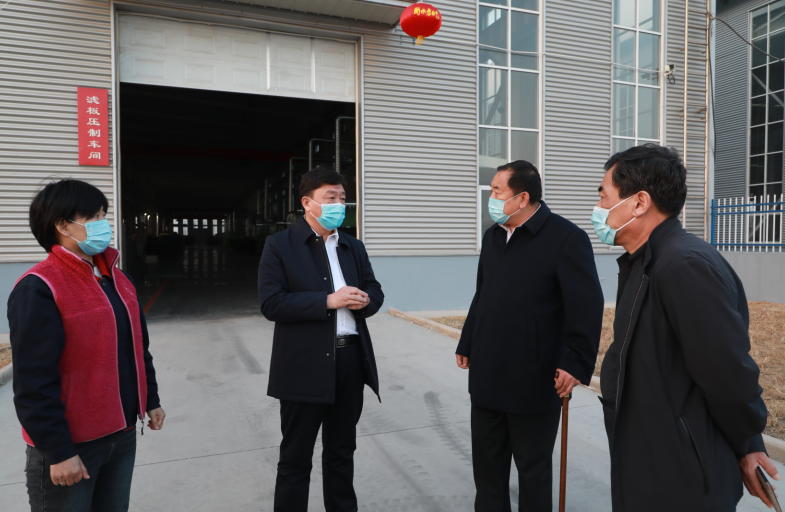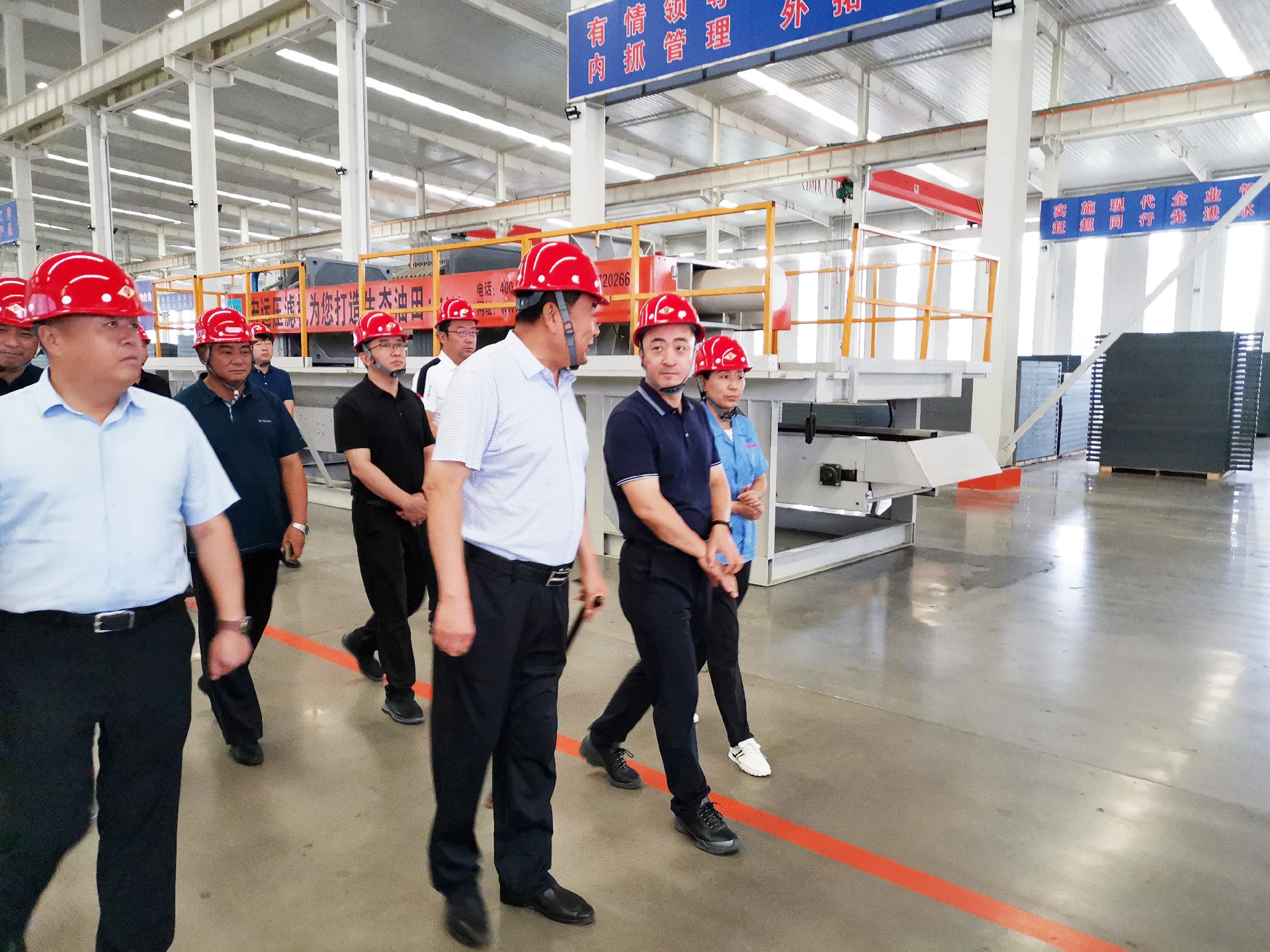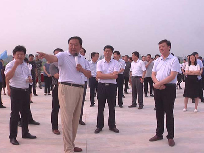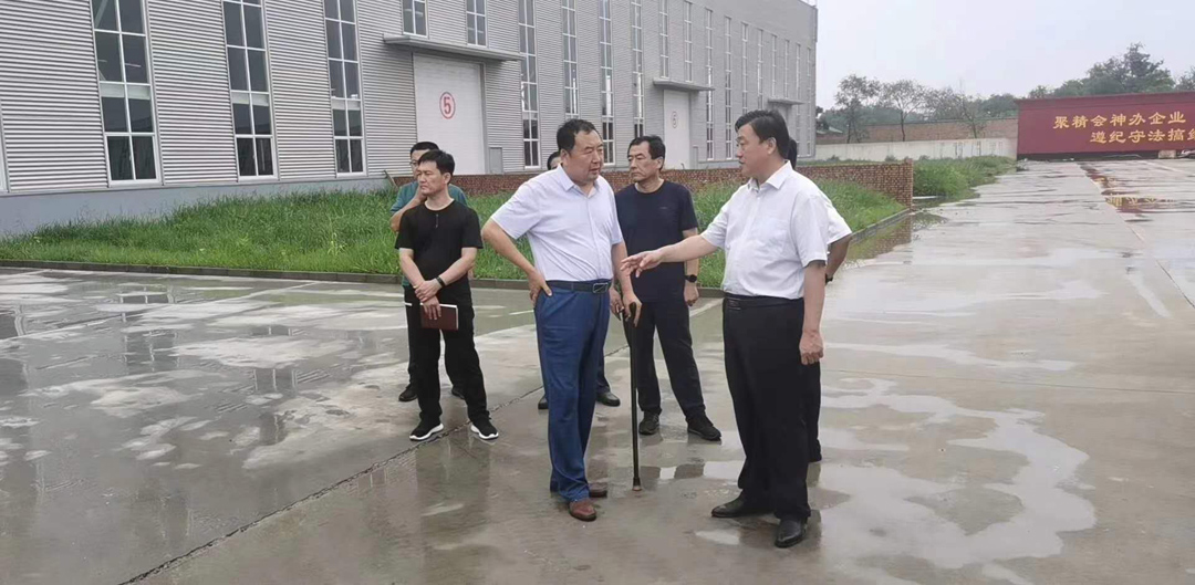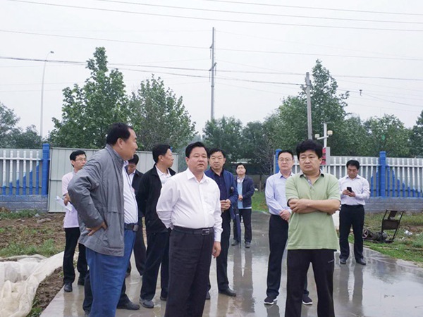 2018年7月19日,縣長(zhǎng)王成宗(中)、開(kāi)發(fā)區(qū)主任候會(huì)然(右一)在新公司施工現(xiàn)場(chǎng)視察工作